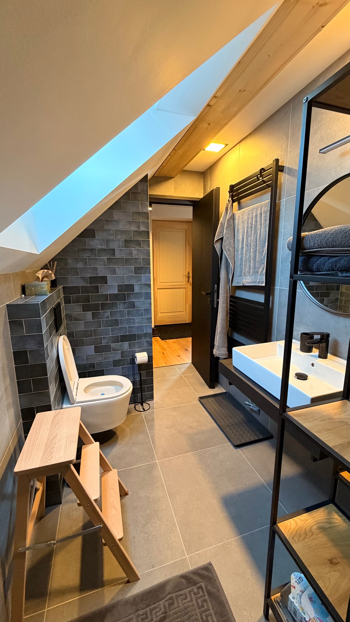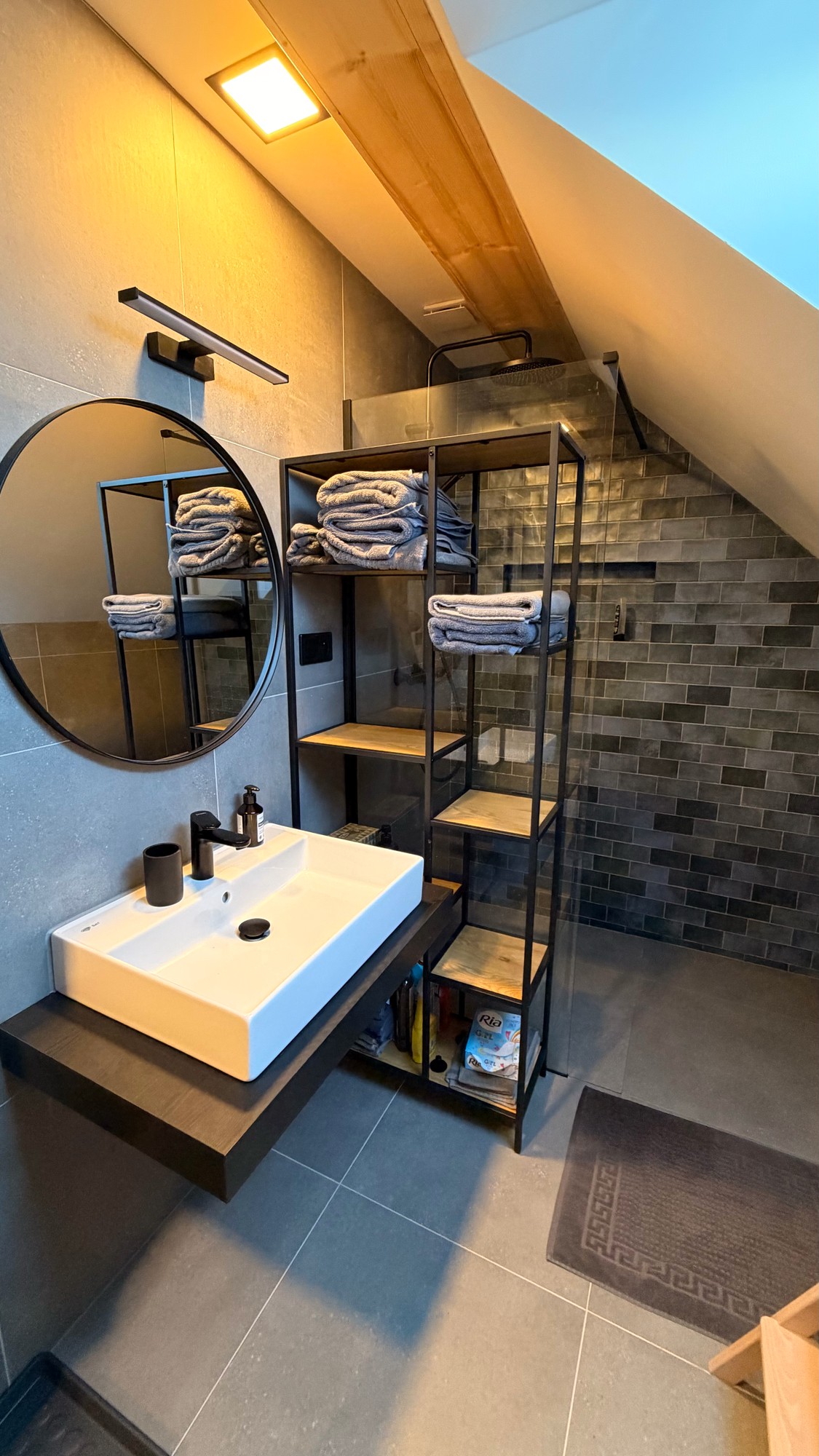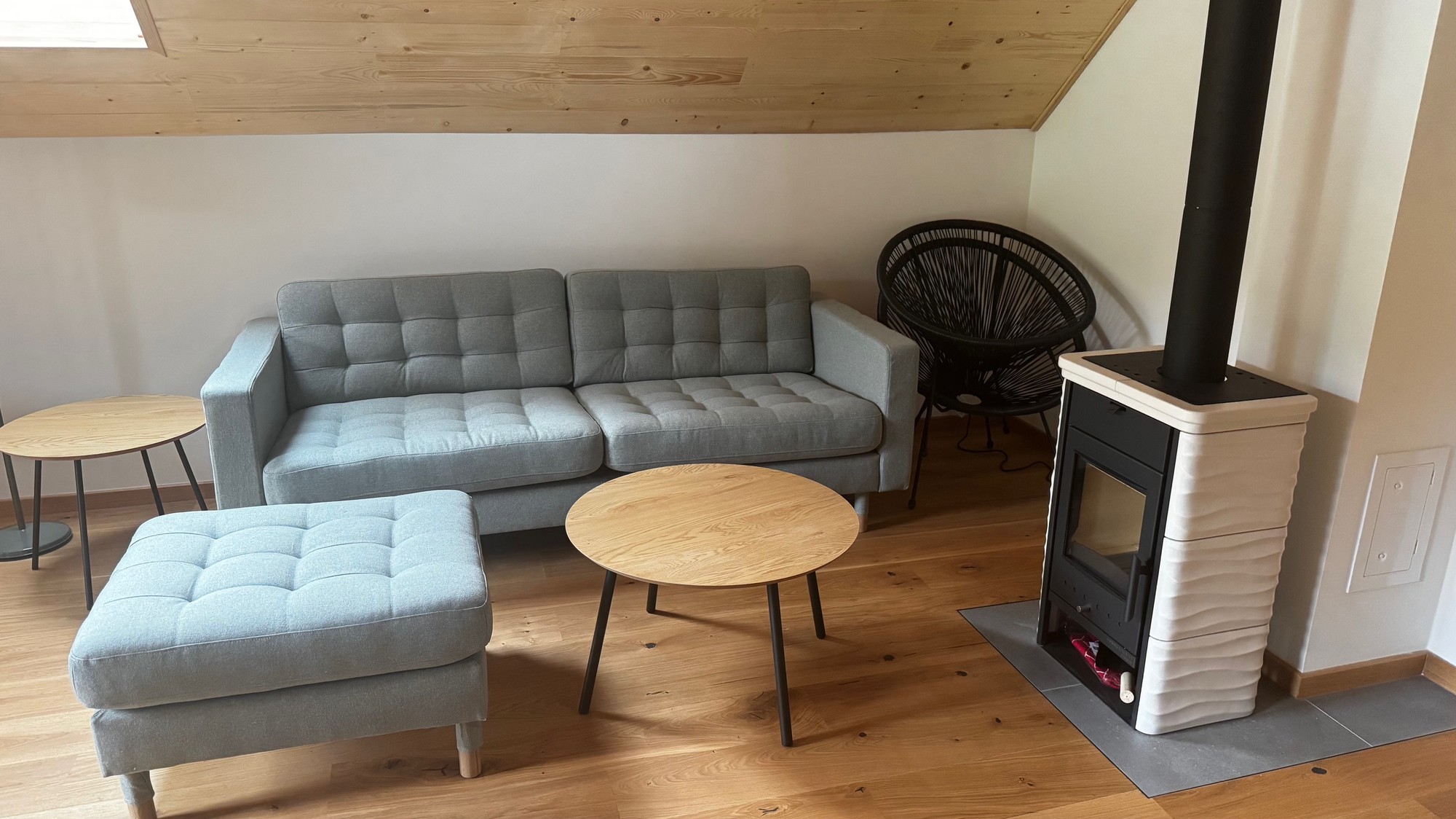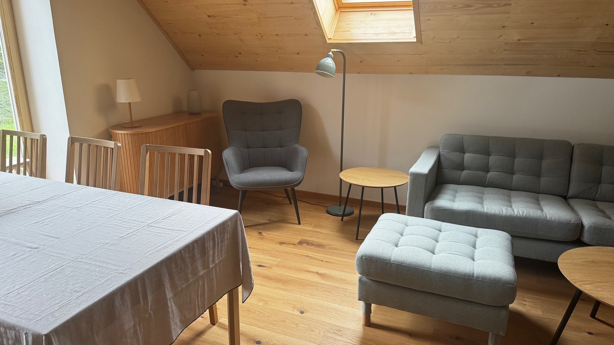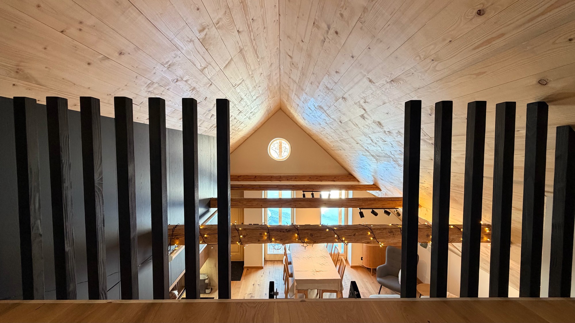 Apartmán pod střechou je moderní podkrovní byt s unikátní atmosférou. Dřevěné trámy, velká okna s výhledem do zeleně a promyšlený design vytvářejí prostor, kde se budete cítit jako doma.