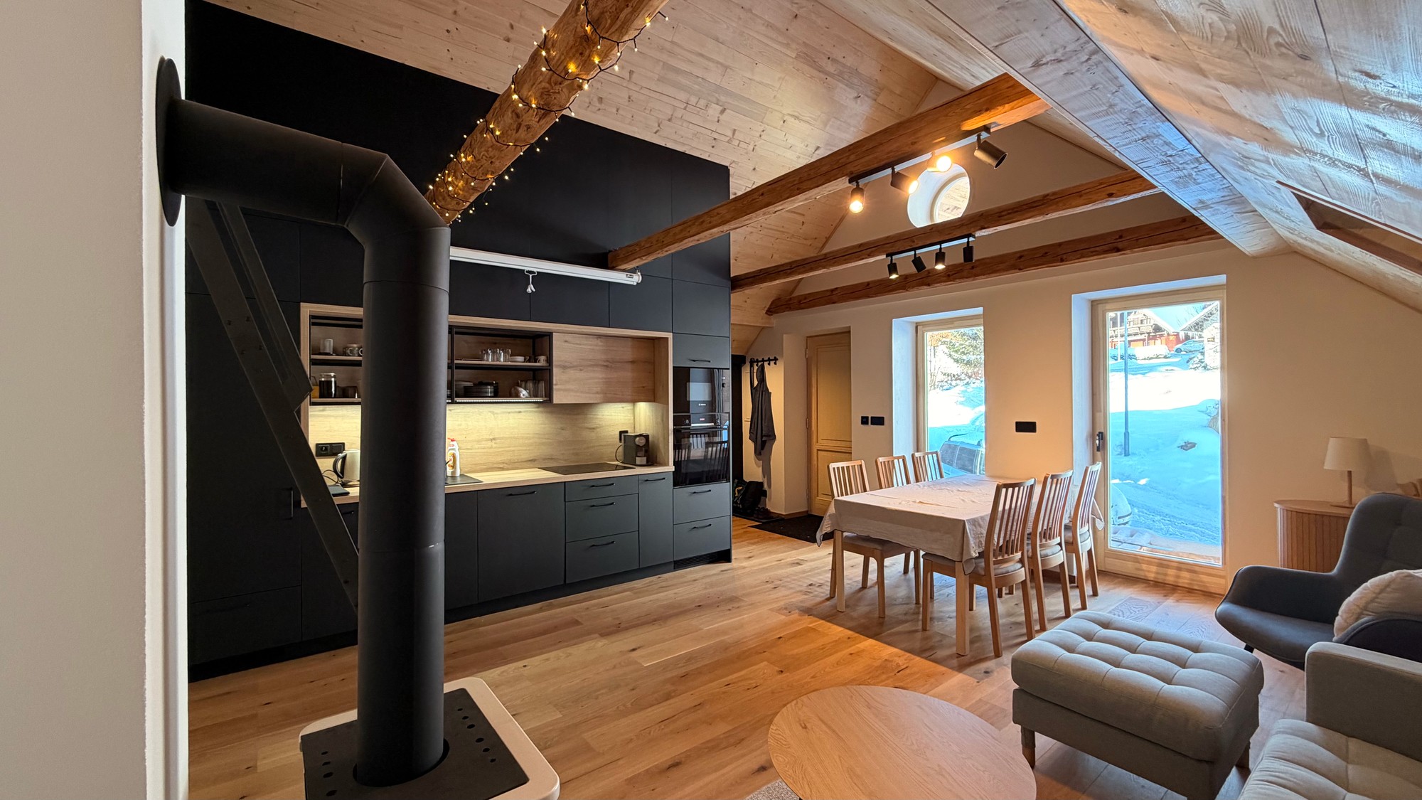 Moderní podkrovní apartmán v srdci Krkonoš nabízí ideální zázemí pro váš odpočinek v každém ročním období.